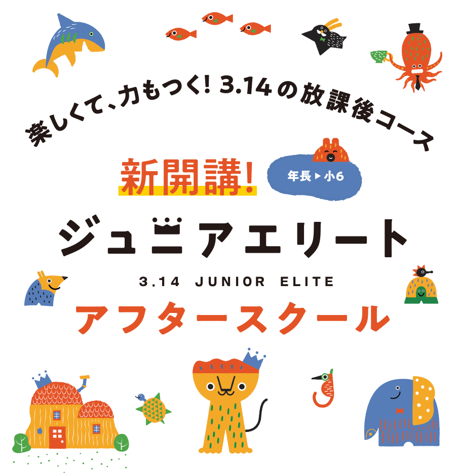 - ※ジュニアエリート アフタースクールの「自習時間」に使用する教材は、算数力・国語力を無理なく育てる最新の思考力育成テキストや、各種パズル教具などをご用意しています。